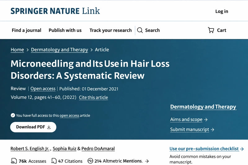 Journal of Dermatological Science: Micro-needling accelerates hair growth up to 5x faster than topical application alone.