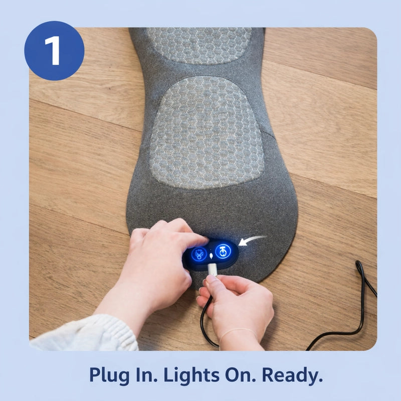 STEP 1: Plug it in. No batteries to die when you need relief.